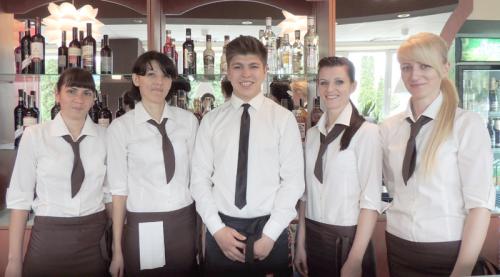 Коллектив работников кафе: повара, бармены, официанты, прошедшие специальную подготовку в лучших кафе и ресторанах не только в Беларуси, но и в соседних странах, не заставят Вас долго ждать в ожидании заказа. Горячие блюда приготовят и подадут в течение 30-35 минут, а холодные закуски в три-четыре раза быстрее – за 7-10 минут.