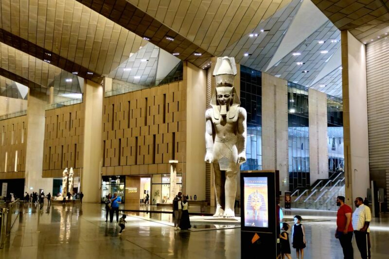 В Большом Египетском музее размещены более 50 тысяч экспонатов, включая 83-тонный колосс Рамсеса II возрастом 3200 лет и 4500-летнюю ладью фараона Хеопса, которому приписывают строительство пирамид.