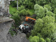 ДТП с участием автомобиля-цистерна, перевозившей дизельное топливо, произошло в районе Речицы. Машина упала с моста.