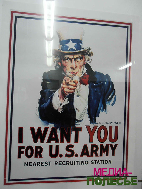 Выставка «Первая мировая война в американских плакатах, кино и музыке» открылась в Пинской центральной городской библиотеке. В экспозиции выставки можно увидеть эталонный плакат Дядюшки Сэма, призывающего вступать в армию США.