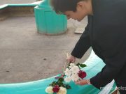 Молодые люди приносили цветы на площадь и оставляли их на фонтане.
