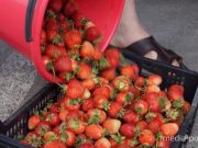 Всего второй день работает клубничный оптовый рынок в агрогородке Дворец, а оживление заметно усилилось по сравнению с первым днём.