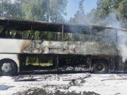 Вблизи Лунинца на трассе М10 около 9 часов утра загорелся автобус. В нем ехали 45 человек.