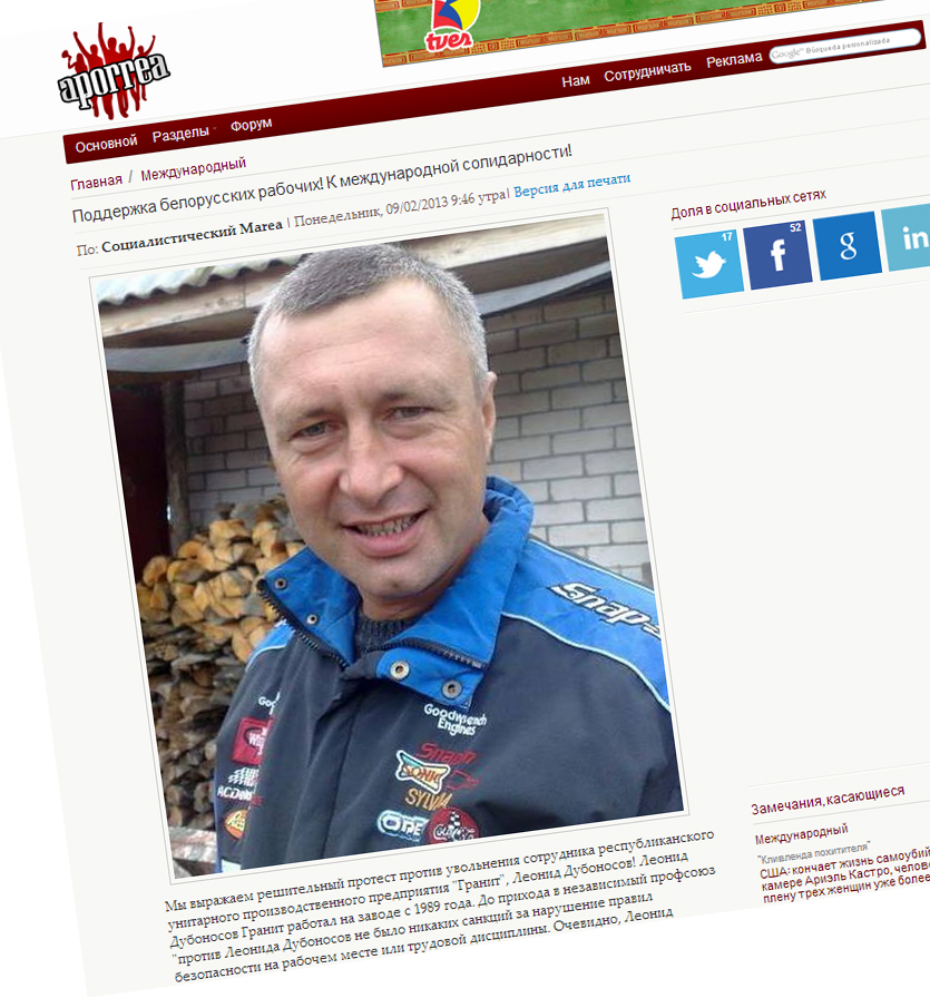 Леонида Дубоносова в его судебном иске к администрации РУПП «Гранит» поддержали трудящиеся Венесуэлы и потребовали прекращения дискриминации по профсоюзному признаку и восстановления на работе всех активистов независимого профсоюза.
