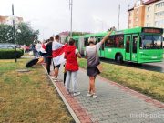25 августа вечером 10 человек с «бел-чырвона-белыми» флагами вышли на площадку у стадиона «Полесье». Люди мирно стояли, лозунгов не выкрикивали.