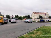 Заезд на площадь Ленина ограничили, поставили металлические ограждения и по всему периметру площади. Подметают, полют клумбы и косят траву.