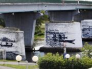 Прежде три исторических изображения в исполнении художника-муралиста Евгения Сосюры находились на опорах старого моста и смотрелись весьма оригинально. Муралы стали достопримечательностью, где и горожане, и туристы любили делать селфи.