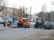 Строительные организации приступили здесь к текущему ремонту одной из главных улиц города. Рабочие снимают старый асфальт, меняют бордюры.