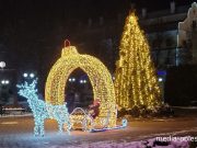 Через полтора часа после боя курантов небо у главной ёлки в Пинске осветил праздничный салют.