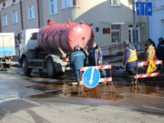 Водопровод прорвало на улице Горького, напротив Пинского районного отдела Брестского областного управления ФСЗН произошел порыв.