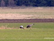 Журавлиная пара кормится на полях ОАО «Ласицк» Пинского района.