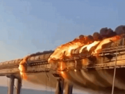 По предварительным данным, цистерна с топливом горит на одном из участков Крымского моста, судоходные арки не повреждены.