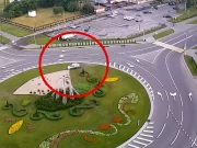 Водитель на перекрестке в круговым движением оказался на газоне в кольце на улице Первомайской.
