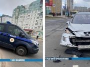 ДТП с участием служебного автомобиля милиции произошло 3 апреля в Минске на перекрестке улиц Матусевича и Колесникова.