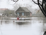 Возле деревни Лахва разлился приток Припяти - Смердь. Вода вплотную подобралась к жилым домам.