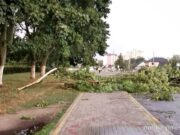 На территории детского оздоровительного лагеря имени Марата Казея 14 іюля примерно в 17:20 часов, в результате внезапно разбушевавшейся стихии, произошло стремительное падение нескольких деревьев.
