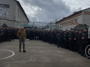 Владелец «ЧВК Вагнер» Евгений Пригожин выспупает перед заключенными одной из российских колоний.