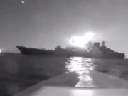 Издание «Украинская правда» опубликовало видео атаки безэкипажного катера на, предположительно, большой десантный корабль «Оленегорский горняк» в бухте Новороссийска. Судя по кадрам, дрон со взрывчаткой достиг цели.