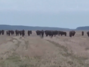 Стадо зубров гуляло у трассы Гомель-Кобрин.