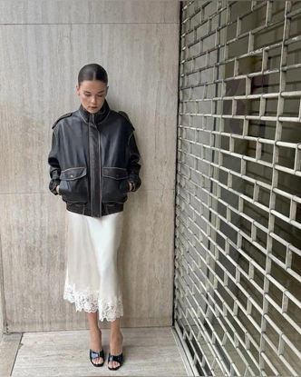 Словно сошедшая с модных хроник 20-х, она струится при каждом шаге и заставляет вспоминать сцены из архивных французских фильмов. Такой вариант идеально работает на контрасте: сочетайте с кожаной курткой, грубыми ботинками или, наоборот, — с полупрозрачными босоножками.