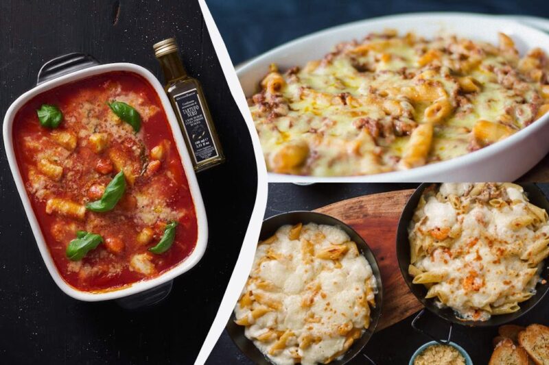 По такому же принципу готовится и сочная запеканка из макарон с фаршем — мясным ингредиентом можно заменить овощи или добавить его в рецепт дополнительно.