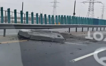 С грузовика упала бетонная плита, машины едва успели затормозить