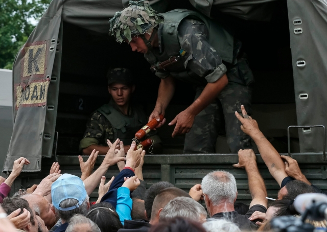Единственная надежда на гуманитарную помощь: Донецкую область ею в основном обеспечивает миллиардер Ринат Ахметов, Луганскую — волонтеры, украинские силовики, МЧС и Россия.