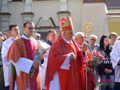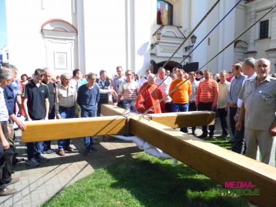 Парафіяне рукамі паднялі шматкілаграмовы дубовы крыж на падрыхтаваны пастамент. Дзея суправаждалася рэлігійнымі спевамі і беларускім гімнам “Магутны Божа”.