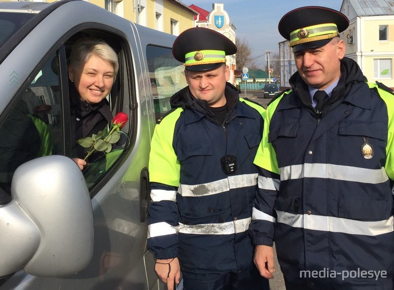 8 марта сотрудники ОГАИ Столинского РОВД дариицветы женщинам-водителям и женщинам-пешеходам. В этот раз приятная для обеих сторон акция проходила в Столине на улицах Советской и Горынской.