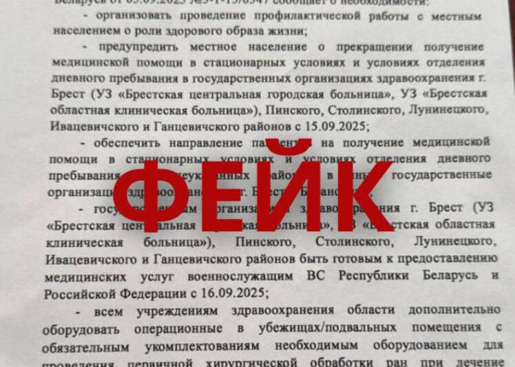 «Никакого перевода больниц на „военные рельсы“ в Беларуси не проводится. Распространение фейка направлено на то, чтобы вызвать нервозность, страх и панику среди населения», — утверждает телеграм-канал «Народный антифейк».