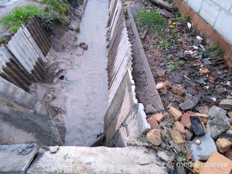 Около месяца назад, в ответ на обращения местных жителей, коммунальные службы прокопали глубокую канаву вдоль хозпроезда по улице Садовой, а берега укрепили старым шифером. Однако, хлынувшая сюда 16 мая дождевая вода легко размыла данное ноу-хау. Снова затоплены огороды, переполнены выгребные ямы. Их содержимое грозит выйти на поверхность.