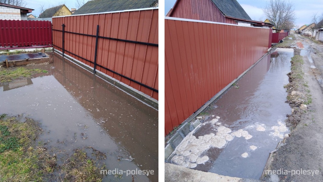 В Столине после очередного дождя снова подтопило улицу Садовую. Плавает не только проезжая часть дороги, в воде стоят огороды, хозпостройки, заборы.