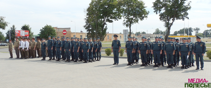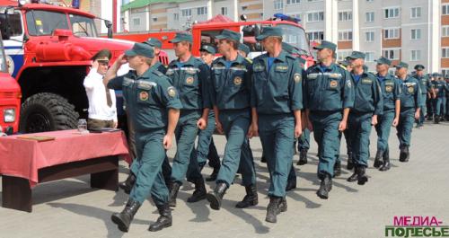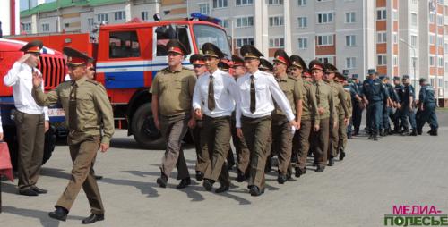 По окончании мероприятия спасатели прошли торжественным маршем по площадке у здания Столинского РОЧС.
