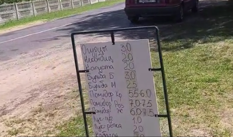 Цены на овощи вполне демократичные, дешевле, чем в магазине. Сезонные овощи из собственных теплиц и огорода, завозные — только экзотические фрукты (мандарины). Есть и «белорусский дефицит» — бульба: большая по 3 рубля, маленькая — по 2,5.