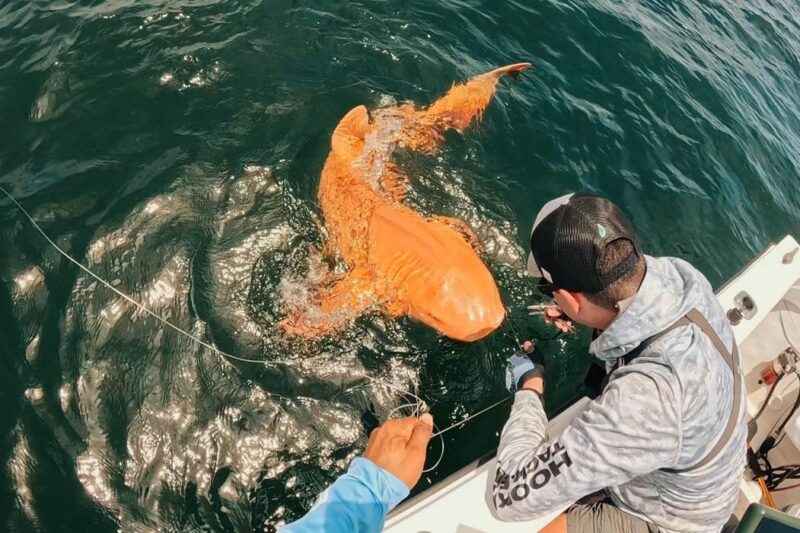 В Карибском море заметили чрезвычайно редкую ярко-оранжевую акулу