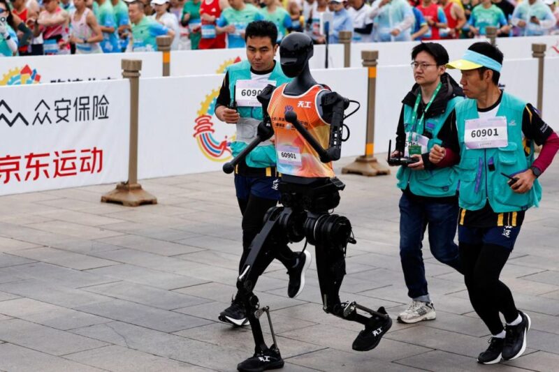 В забеге приняли участие 12 тысяч бегунов-людей и более 20 двуногих машин китайских производителей вроде DroidVP и Noetix Robotics, причем разных размеров. Рост андроидов варьировался от 120 до 180 см. Одна компания представила робота с женственными чертами и умению подмигивать и улыбаться.