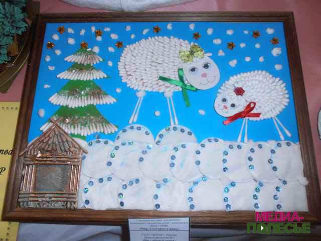 В фойе ГДК расположилась выставка творческих работ, сделанных руками инвалидов. В основном преобладала новогодняя тематика: картины, снеговики, сказочные персонажи, открытки из кожи, бисера.