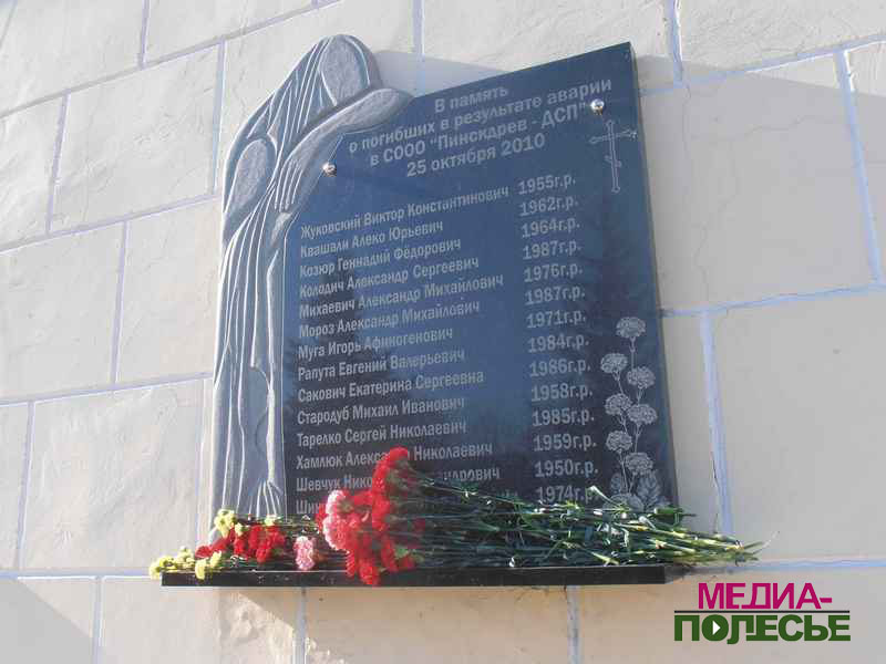 Дата самой крупной в Беларуси по числу жертв техногенной аварии прошла почти незаметно. Память погибших пришли почтить их родственники, несколько пинских чиновников и представителей руководства «Пинскдрева».