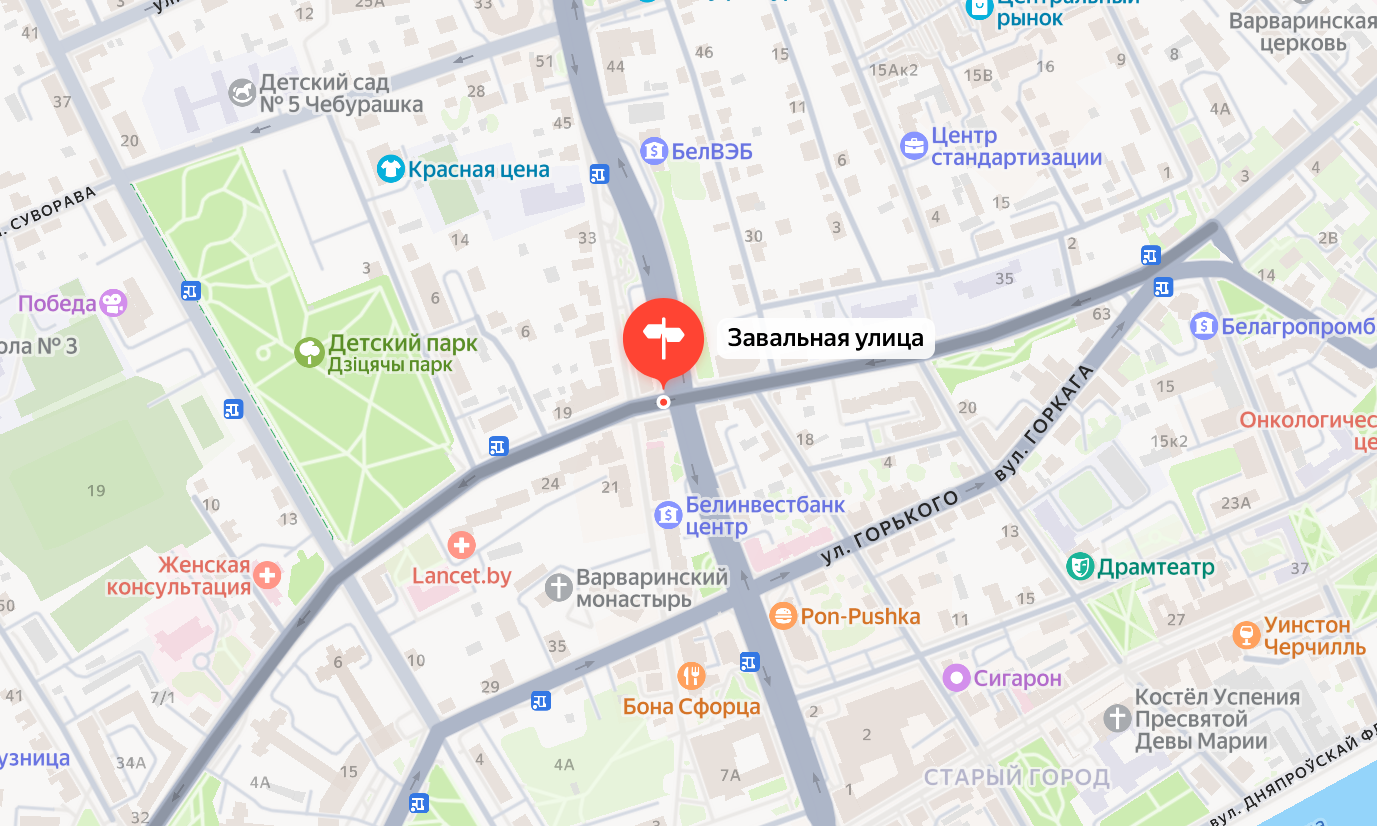 Сегодня здесь проходит граница исторической части города Пинска и поделена она на: Завальную, площадь Кирова и Ровецкую улицы.