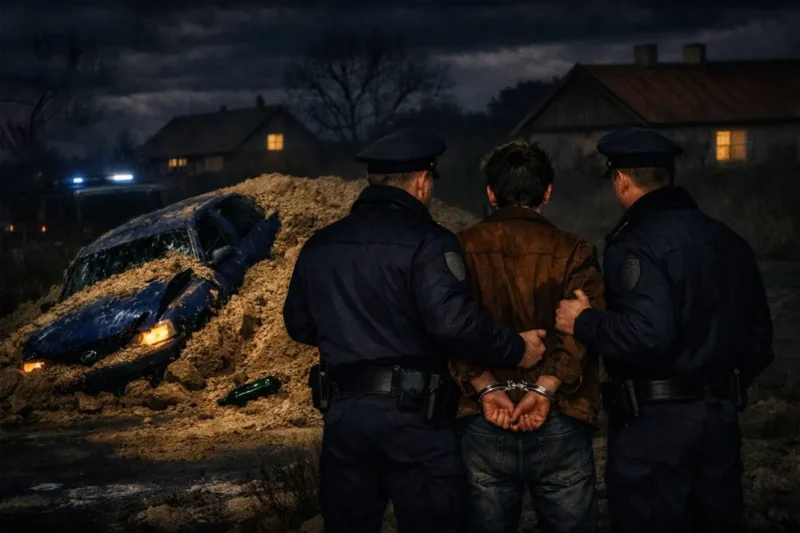 Пешеходу причинены тяжкие телесные повреждения. Вместо того чтобы остановиться и вызвать скорую помощь, водитель покинул место аварии. Однако спустя несколько сотен метров врезался в песчаную насыпь. Прибывшие на место сотрудники милиции задержали фигуранта.