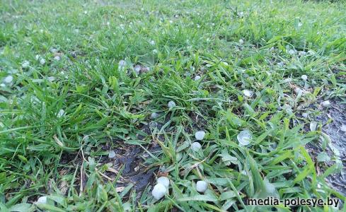 Град падал размером не меньше, чем ягоды черешни, порывами ветра и сильным дождём местами положило посадки в огородах.