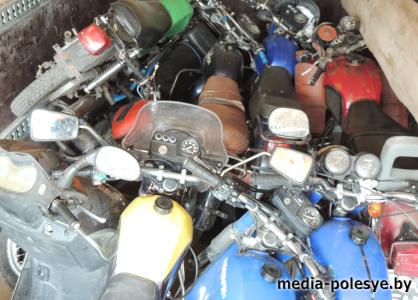 В Большом Малешеве изъято 4 мотоцикла. Причём, некоторые из них инспектора ГАИ грузили при помощи кары: мотоциклы-то тяжёлые.