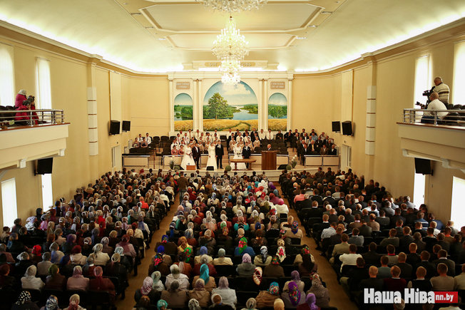 Евангелісцкія вяселлі ў Альшанах адбываюцца ў нядаўна пабудаваным Доме малітвы. На фота: у чаканні службы.