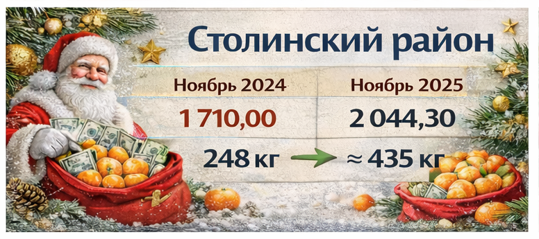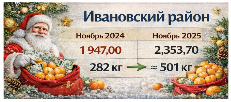 Если год назад на среднюю зарплату можно было купить около 250–285 килограммов мандаринов (в зависимости от района), то в 2025 году — уже 430–500 килограммов. Разница — почти в два раза. И это без всяких сложных расчётов.