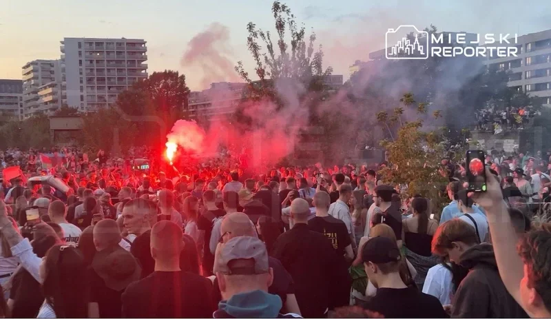 Полицейские Варшавы прибыли на место после сообщения о нарушении общественного порядка. В пиковый момент на месте работали несколько сотен полицейских из десятков экипажей.