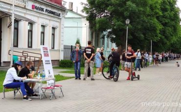 В центре Пинска выстроились люди