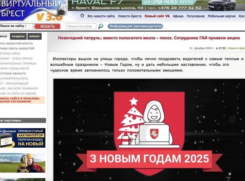 Поздравления от киберов украсили сайты Brest.by и virtualbrest.ru, а также технопарка Могилева technopark.by.