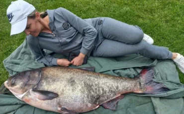 Женщина поймала на Припяти толстолобика весом под 60 кг