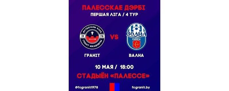 Микашевичский «Гранит» и Пинская «Волна» сыграют 10 мая на стадионе «Полесье» в Лунинце.