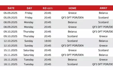 Объявили даты матчей сборной Беларуси в отборе на ЧМ-2026.